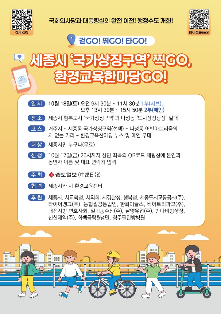 | 제목 | [안내] 중도일보, 세종시 '국가상징구역' 찍GO, 환경교육한마당 GO! 개최 안내 | ||