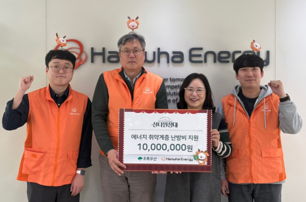 한화에너지, 임직원, 에너지 취약계층 아동에 1천만 원 기부 - 따뜻한 나눔 실천, 초록우산 산타원정대 캠페인 통해 겨울철 난방비 지원 예정