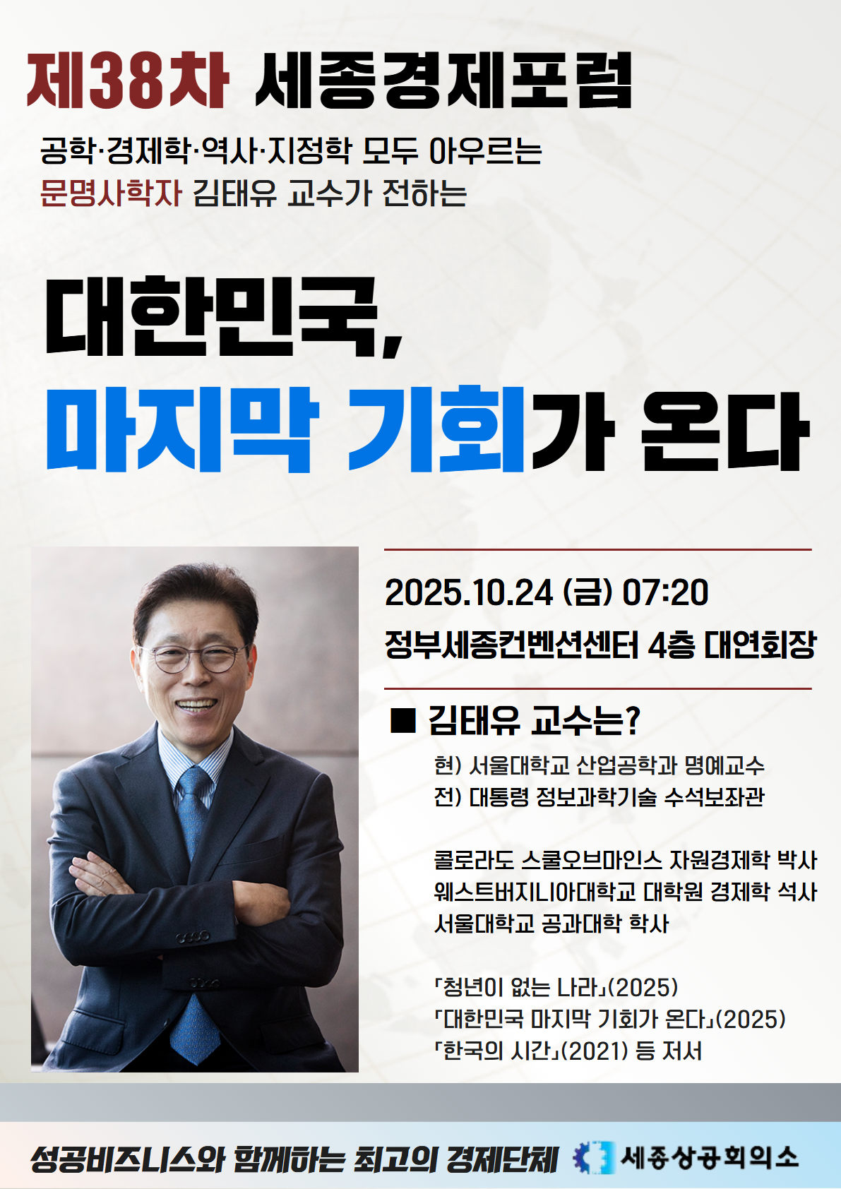 | ‒ | 제38차 세종경제포럼 조찬세미나 개최 안내 |